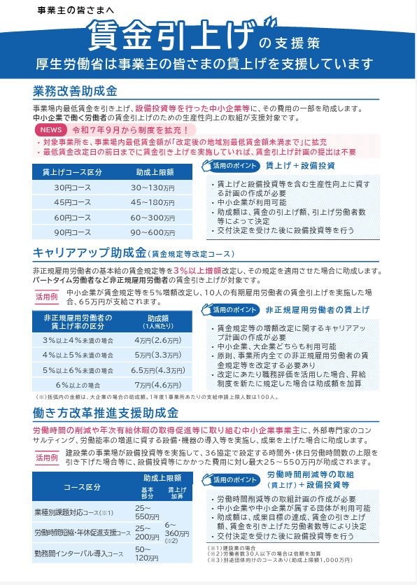 2025.10.31 📍更新📍最低賃金引上げに対応する中小企業・小規模事業者への支援策