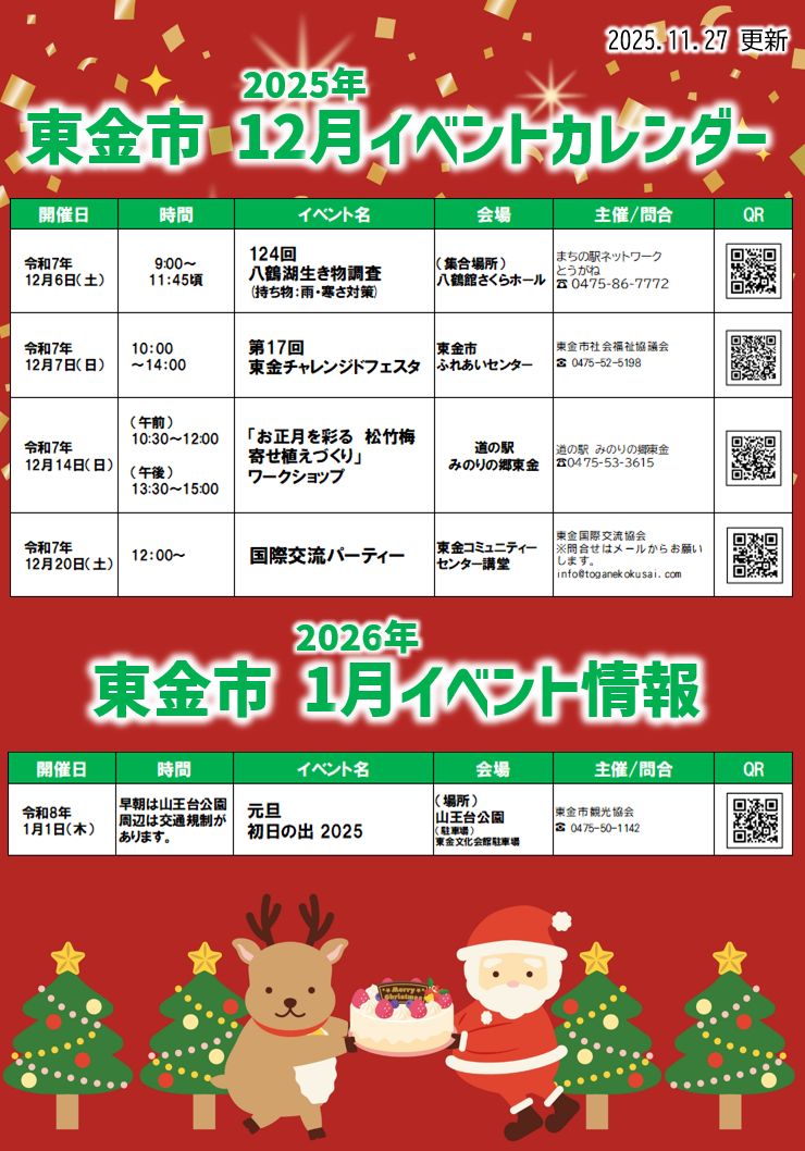 ▶令和7年12月東金市イベント情報を更新しました。