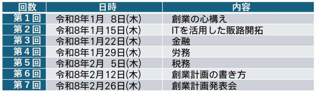 令和8年開催分のとうがね夜間創業塾についてのスケジュールが決まりました。