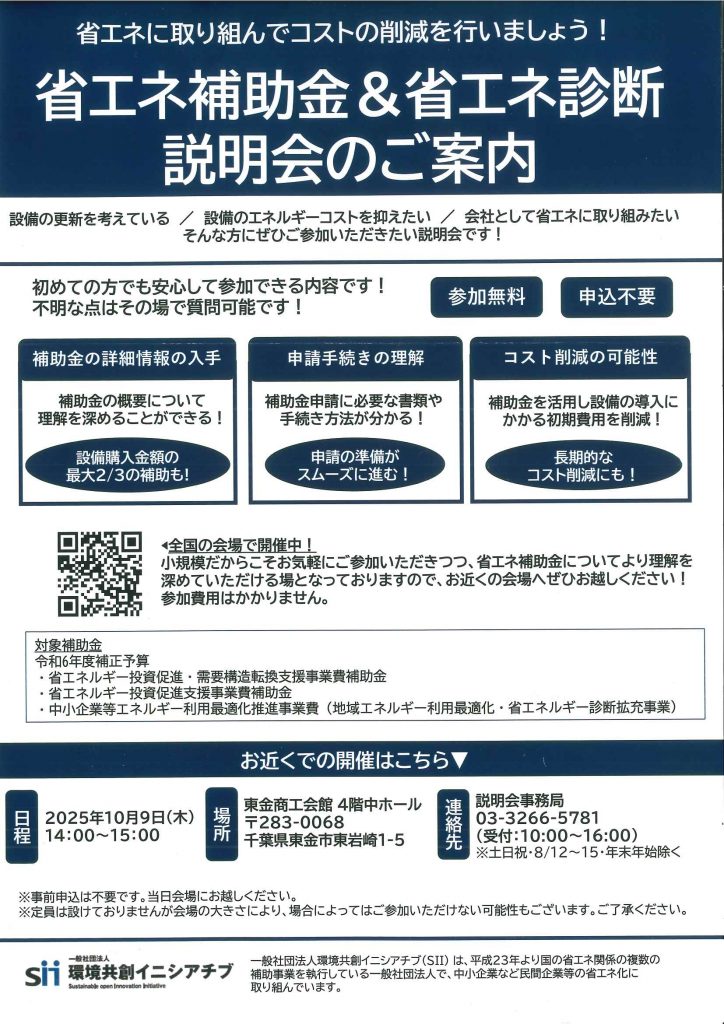 2025.09.30 コスト削減のチャンス!省エネ補助金活用説明会のご案内