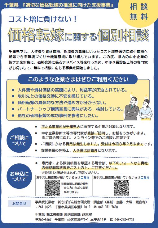 2025.10.11<千葉県>コスト増に負けない!価格転嫁に関する個別相談(無料)のご案内