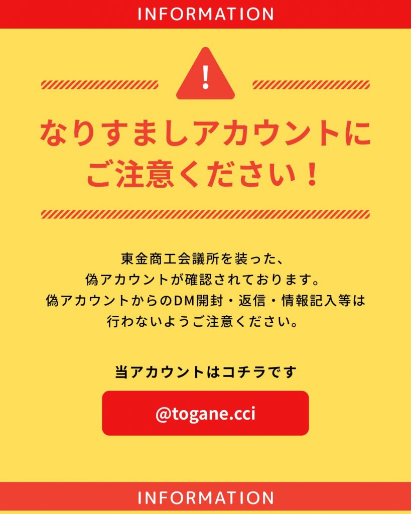 2025.10.03【重要なお知らせ】東金商工会議所を装った偽アカウントにご注意ください