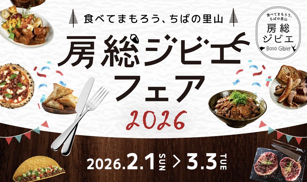 📣 千葉県では、この冬 ― 県産のイノシシ・シカ肉「房総ジビエ」を使った料理・商品を集めた「房総ジビエフェア2026」を開催します。食の可能性を広げ、地域の“里山”と“食文化”を盛り上げませんか?