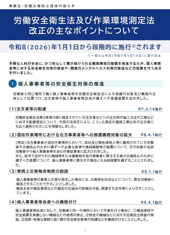 労働者と同じ作業現場で働く個人事業者等についても、安全衛生対策が必要となることが明確になりました。