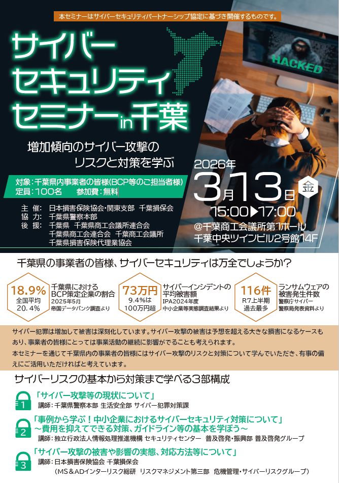2026.01.23🚨サイバーセキュリティセミナー in 千葉のご案内🚨 【2026年3月13日(金)開催】