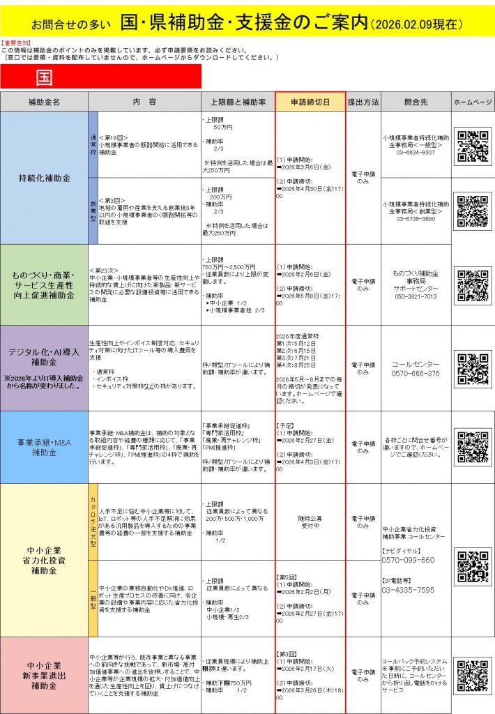 2026.02.08 🚩【更新】 🚩お問合せの多い補助金の一覧です。