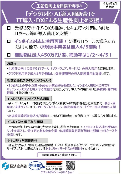 ▶デジタル化・AI導入補助金(旧:IT導入補助金)