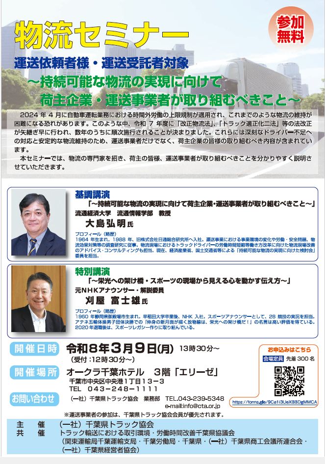 2026.02.13🚚物流セミナーのご案内🚛(荷主企業・運送事業者が取り組むべきこと)