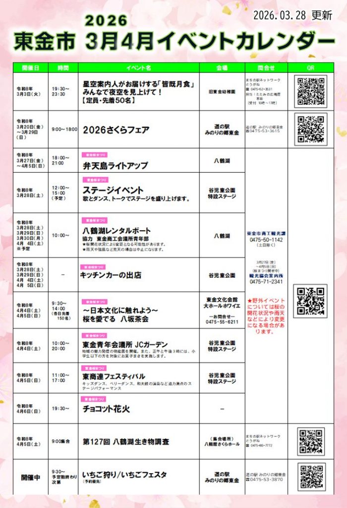 2026.02.28🌷2026年3月🌷イベントカレンダー掲載しました。 公開日: 2026年2月28日 | 投稿者: 指導課 令和3年2月東金市イベント情報を更新しました。https://www.togane-cci.or.jp/toganecity_event_calendar/