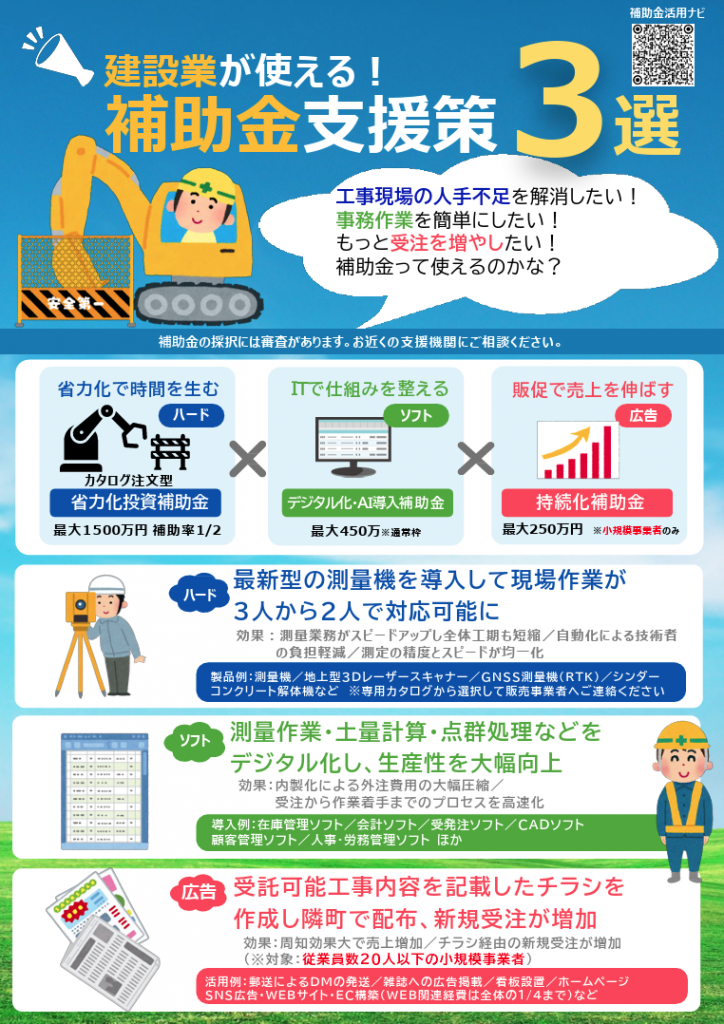 独立行政法人中小企業基盤整備機構(中小機構)より、中小企業・小規模事業者向けの補助金支援策を分かりやすく整理した業種別チラシ(電子データ)が作成されました。