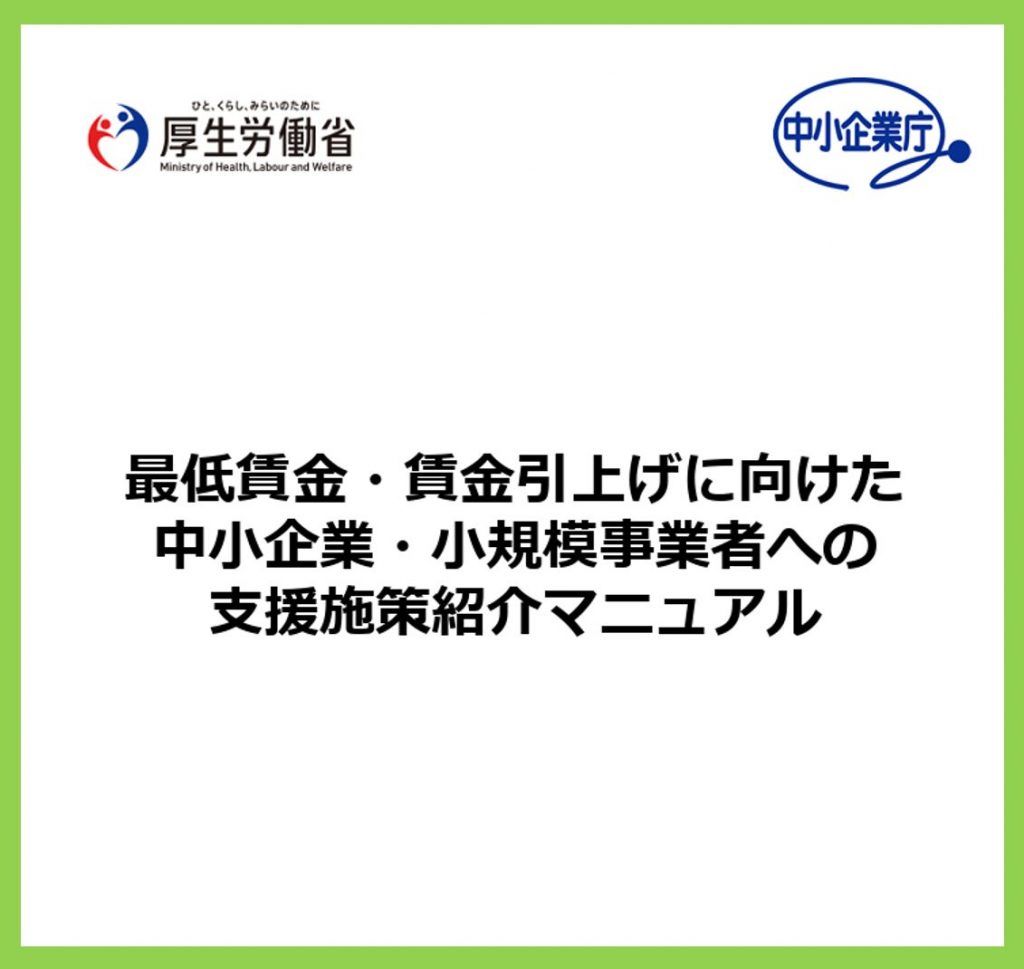 最低賃金の継続的な引上げに対応するため、中小企業や小規模事業者が賃上げに取り組む際に利用できる各種支援策をまとめた資料が公開されています。制度の概要を整理した一覧表や、活用できる施策を紹介したマニュアルが掲載されています。ぜひご活用ください。