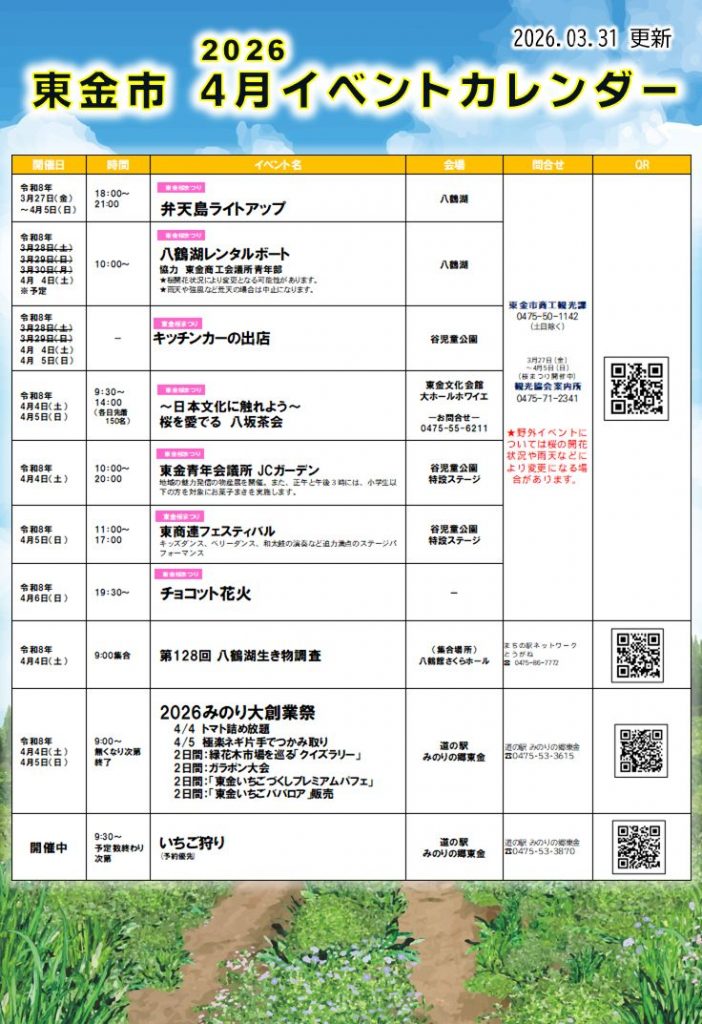 2026.03.31🌸2026年4月🌸イベントカレンダー掲載しました。 公開日: 2026年3月31日 | 投稿者: 指導課 令和6年4月東金市イベント情報を更新しました。https://www.togane-cci.or.jp/toganecity_event_calendar/