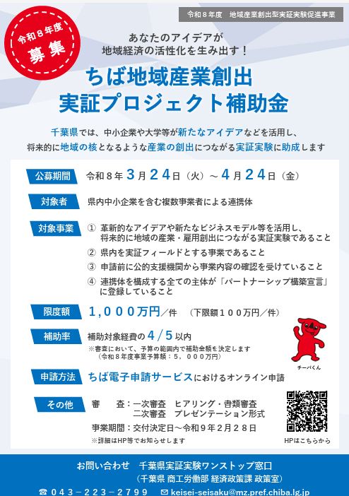 2026.03.23「ちば地域産業創出実証プロジェクト補助金」のご案内(千葉県)