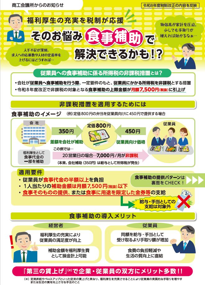 従業員への食事補助に係る所得税の非課税措置の周知チラシのご案内